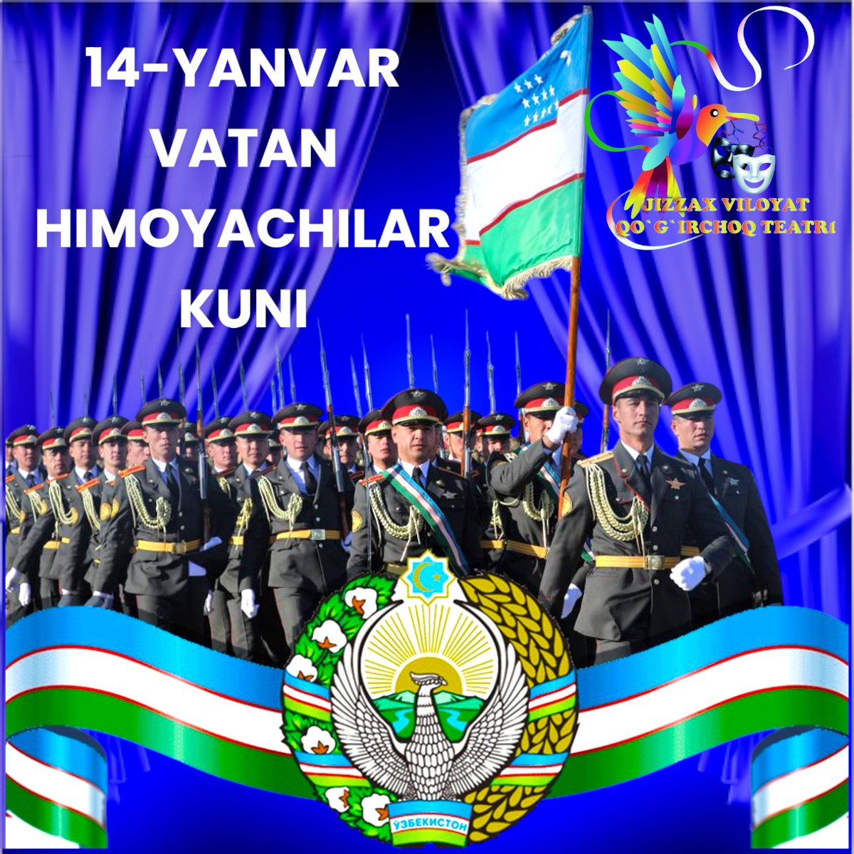 Yurt tinchligi, mamlakatimiz sarhadlari daxlsizligi, vatan xizmatini o’zining oliy burchi deb bilguvchi mard o’g’lonlarimizni 14 – yanvar «VATAN HIMOYACHILARI KUNI» bilan muborakbod etamiz!