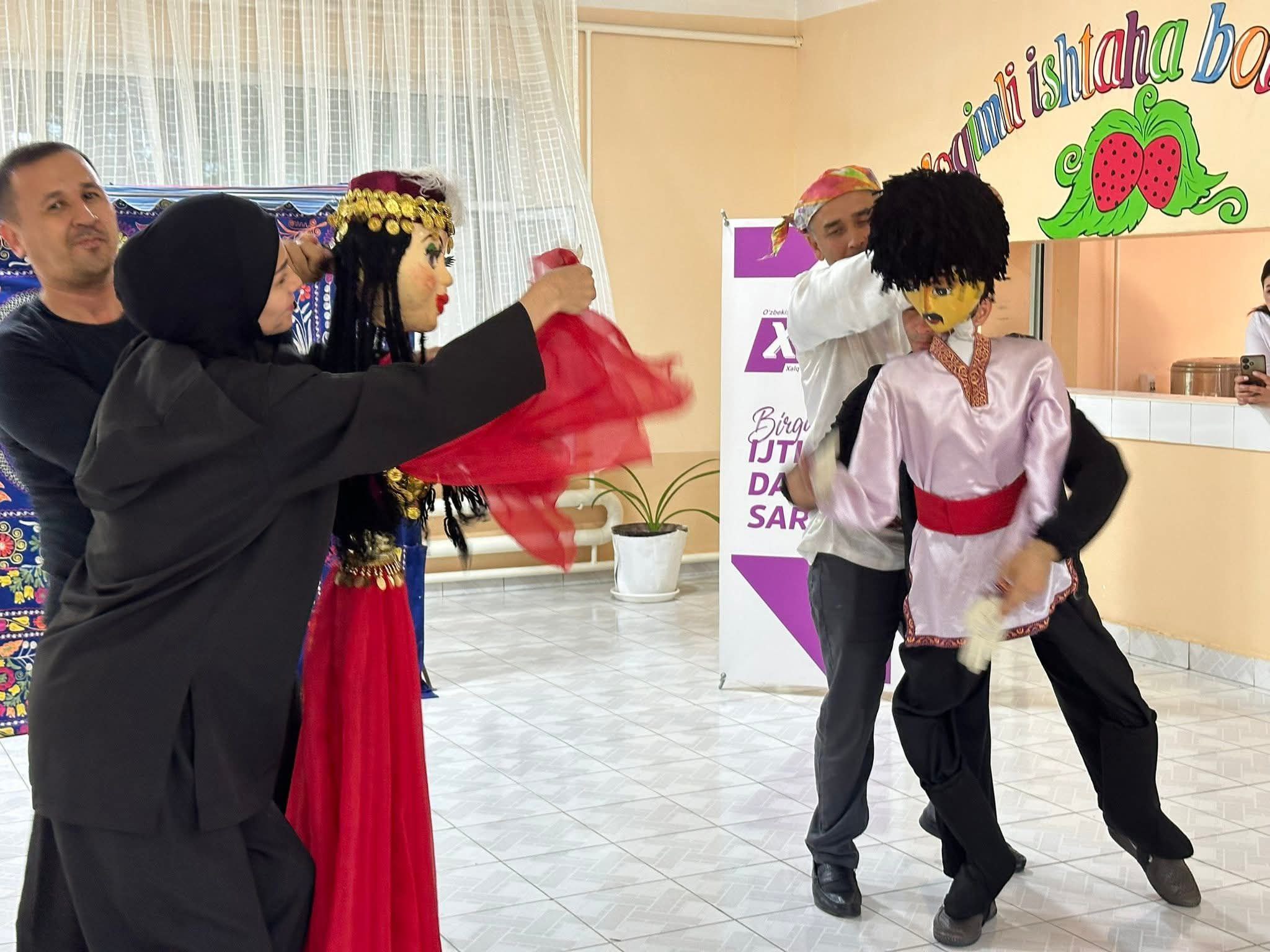 Tadbir doirasida bolalarning sevimli ko‘ngilochar shakllaridan biri — ”Qo‘g‘irchoq teatri” sahnaga chiqarildi.